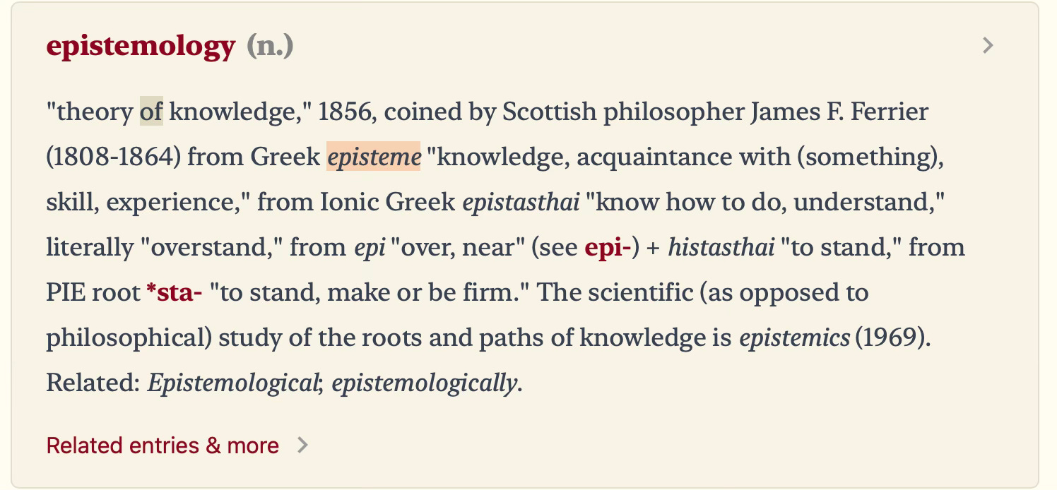 “Episteme” from the Greek for knowledge, to stand (sta-) upon (epi-). Knowledge that stands upon what it suppresses, that erases, that enacts violence.